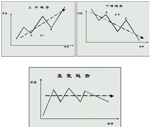 趨勢(shì)反映的是市場(chǎng)匯價(jià)變動(dòng)的大致方向。上升趨勢(shì)的圖形反映出匯價(jià)不斷創(chuàng)高,在升勢(shì)中的短暫回落,往往成為買(mǎi)盤(pán)入市的良機(jī),若升勢(shì)持續(xù)時(shí)間較長(zhǎng)而且一浪高過(guò)一浪,就成為“牛市”。匯市有強(qiáng)烈看漲情緒,稱(chēng)為“牛市正旺”。下跌趨勢(shì)的圖形反映匯價(jià)不斷推低,跌勢(shì)中的短暫回升,往往成為賣(mài)盤(pán)入市的良機(jī)。跌勢(shì)持續(xù)時(shí)間長(zhǎng)而且一浪低過(guò)一浪,就成為“熊市”。匯價(jià)強(qiáng)烈看跌時(shí),稱(chēng)為“熊市籠罩”。在經(jīng)濟(jì)數(shù)據(jù)或重要新聞公布前和周末,因?yàn)橥顿Y者擔(dān)心匯市突變和周末假期,多數(shù)平倉(cāng)觀望,市場(chǎng)交投淡靜,匯價(jià)波動(dòng)極小。因?yàn)槿狈M(jìn)一步方向,匯價(jià)在較長(zhǎng)一段時(shí)間在一定幅度內(nèi)徘徊,稱(chēng)為“牛皮市”。在這種情況下,等待觀望通常是最明智的。當(dāng)匯價(jià)沖破水平趨勢(shì)的上限或下限,后市均可能勁升或勁跌。